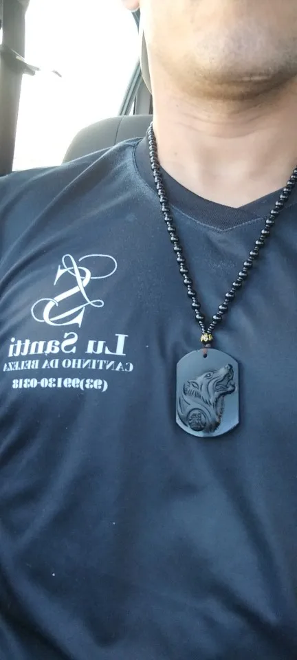 Black Obsidian Carved Wolf Head Amulet Pendant Necklace